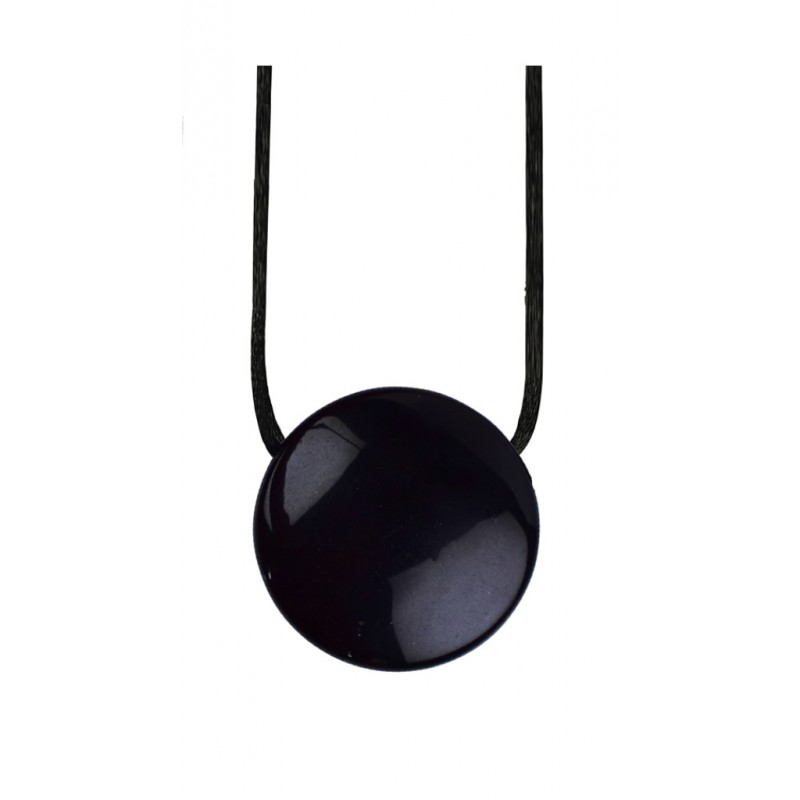 Als Schmuck getragen, schützt er davor, zu viel unserer eigenen Energie an andere abzugeben und dadurch selbst kraftlos zu werden. Insbesondere wenn wir im Alltag, z.B. im Büro, von vielen Menschen umgeben sind, soll uns die Obsidianscheibe vor negativen Kräften abschirmen. Auch bei einzelnen Menschen, die uns nicht wohlgesonnen sind, kann er ein wertvoller Schutz vor feinstofflichen Übergriffen sein.